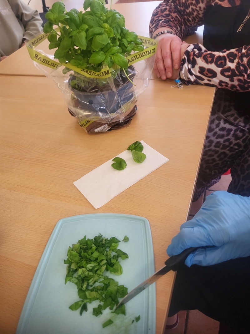 Gemeinsam mit den Bewohnern des Steintorpalais backten wir ein Sauerteigbrot. Um das Ganze noch schmackhafter zu machen, stellten wir unsere eigene Butter her. Auf Wunsch teilten wir die Butter in 2 Hälften, um einen Teil mit frischen Kräutern zu verfeinern. In einer gemütlichen Runde ließen wir uns das köstliche Brot mit unserer Butter schmecken.